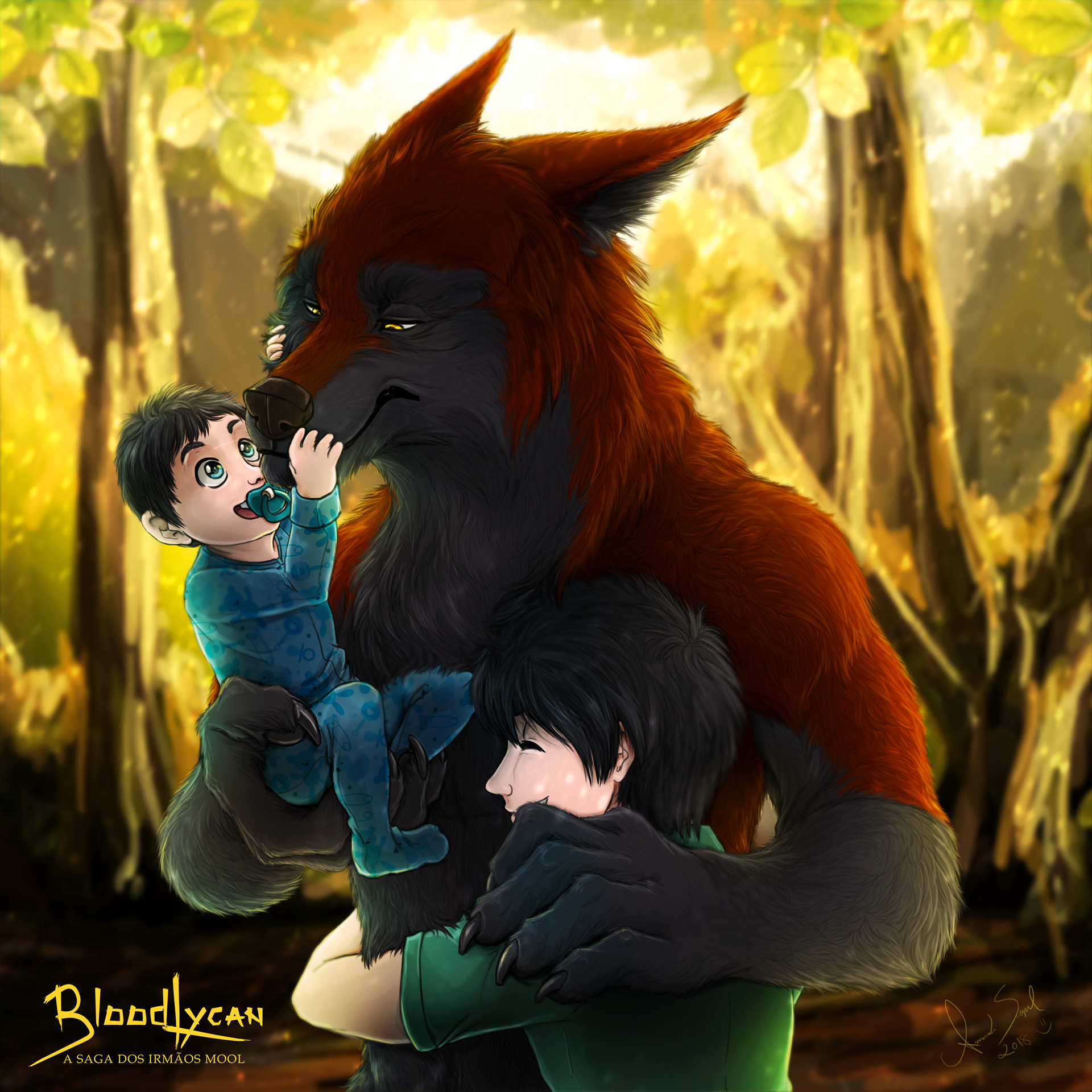 Olá! :) Ilustração em homenagem a todos os pais! =) Estes são Charles e seus filhos Allec e John. espero que gostem ------------- Hello! :) Illustration in honor of all the parents! =) They are Charles and your children Allec and John. Hope you like Personages from BloodLycan and Art © Amanda Scopel